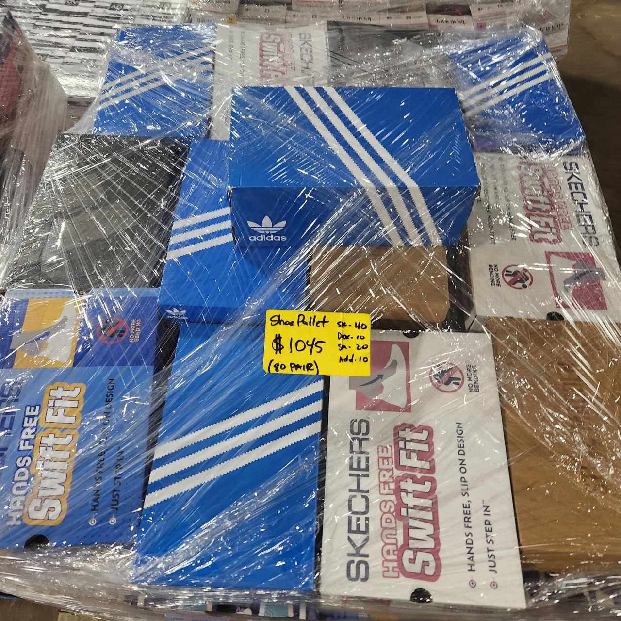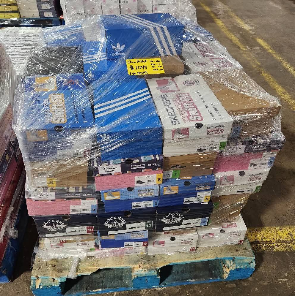 Get 75 pairs of assorted branded shoes for just £296.62 per pallet – that’s less than £3.19 per pair at wholesale price!